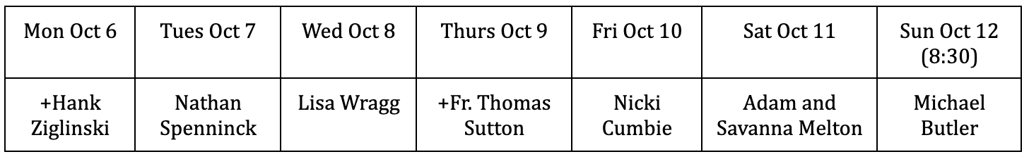 We invite you to bring a shareable snack to enjoy after Mass. As always, coffee will be provided!
